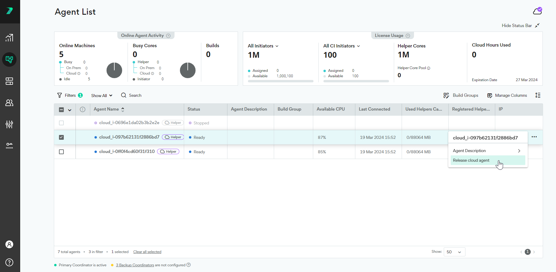 オプションメニュー(3つの点)をクリックし、Release cloud agentをクリックします。