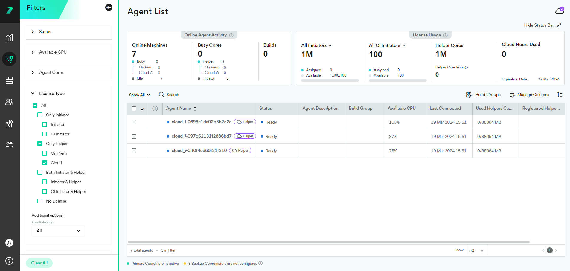 Incredibuild Cloud がアクティブな場合、Incredibuild は自動的にクラウド上の VM の利用可能なコアを割り当て、タスクの実行を高速化します。お使いのIncredibuildのバージョンによって、クラウドVMに関するさまざまな情報を表示することができます。