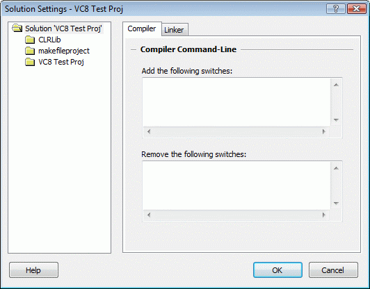 2. [Compiler] または [Linker] タブを選択して、追加 (削除) するオプションを入力します(1 行に 1 つ)。