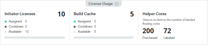 現在割り当てられているライセンス数、割り当て待ちのライセンス数(使用可能)、待機中のライセンス数を表示します。各固定イニシエータライセンスは、24時間に1回のみ割り当てることができます。各割当ての後、ライセンスは24時間待機中とみなされます。