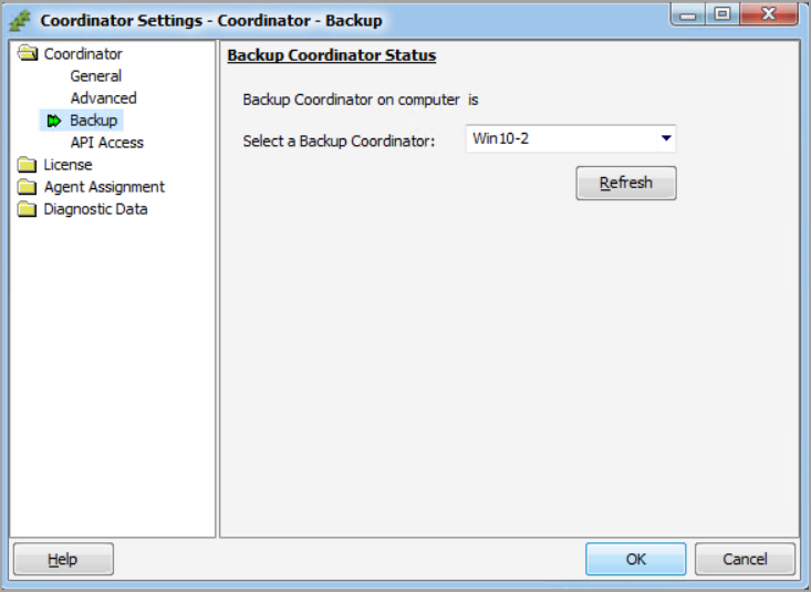 ネットワーク上で利用可能なすべての Backup Coordinator がドロップダウン リストで表示されます。リストから選択した Backup Coordinator が有効にすると、Coordinator が何らかの理由で使用できなくなった場合にその代わりとして動作します。