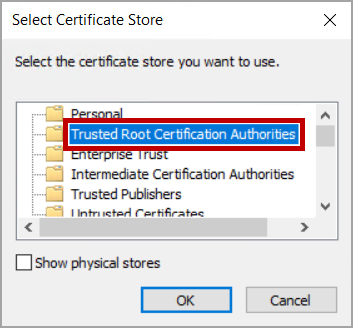 [Trusted Root Certification Authorities] を選択して [OK] をクリックします。