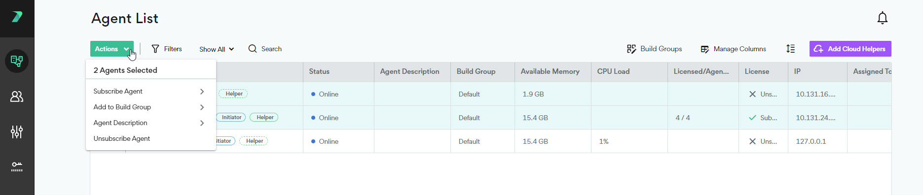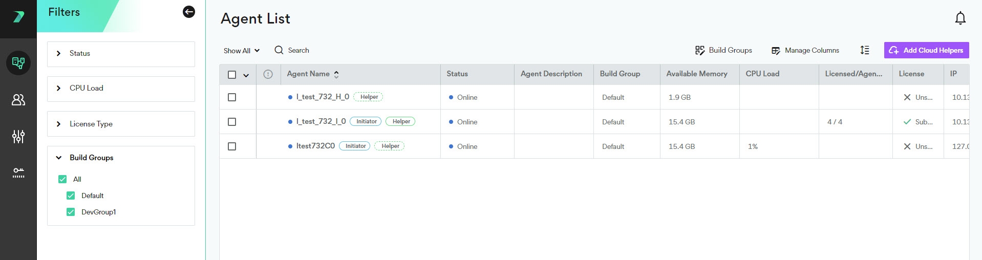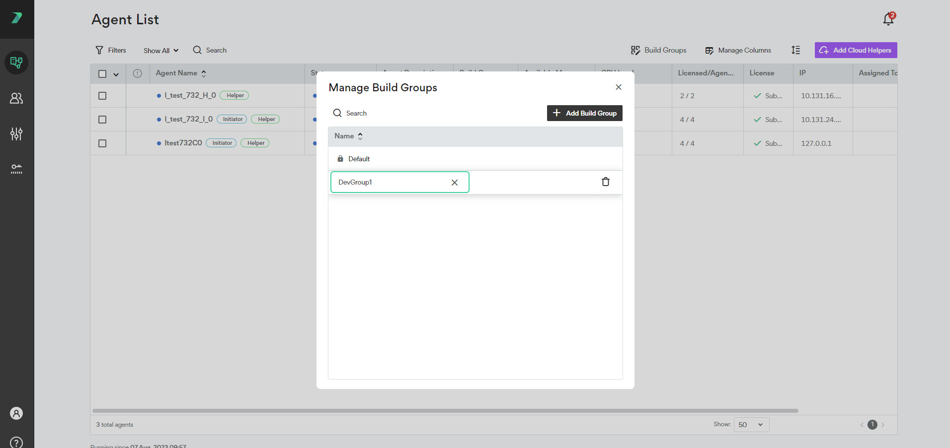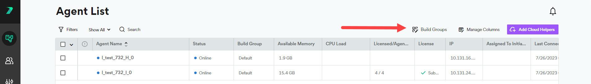 Build Groups allow you to limit build distribution to a select group of Agents. Each Build Group includes Initiator Agents and Helper Agents. By default, every Agent is assigned to the Default Build Group.