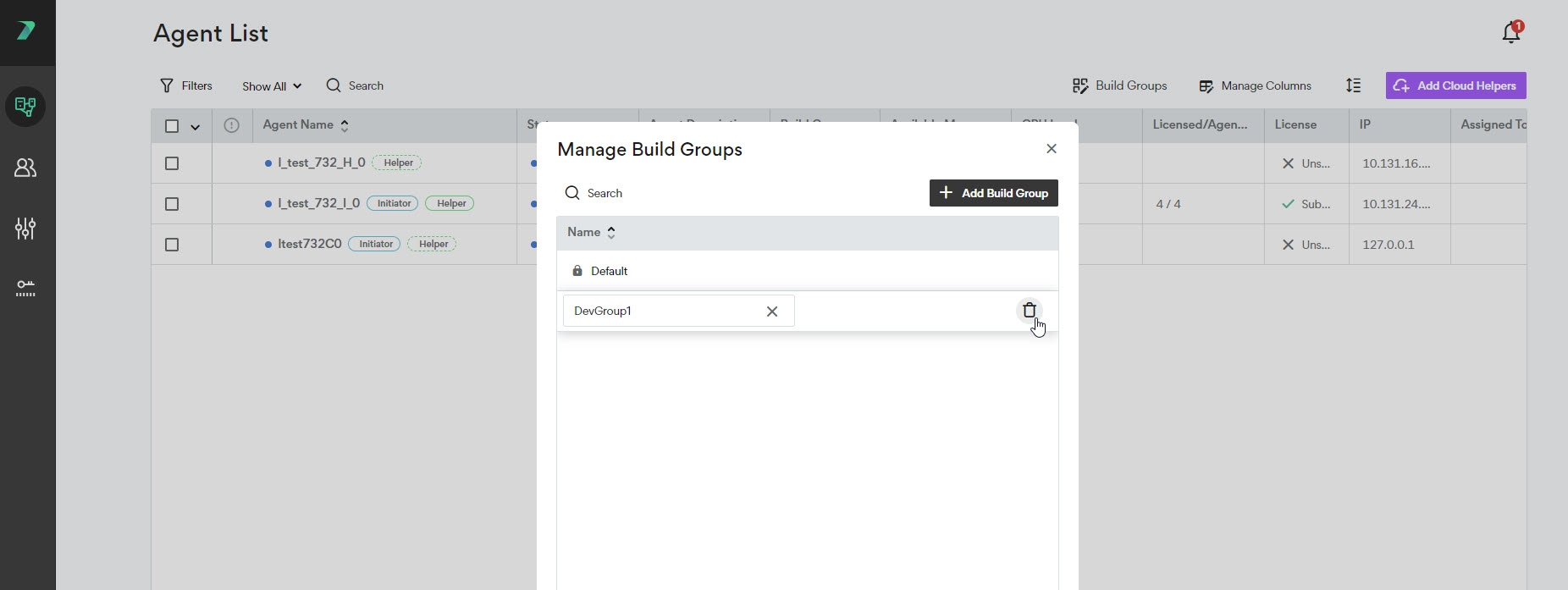 To delete an existing Build Group, click Build Groups and use the trash button next to the Build Group you want to delete.