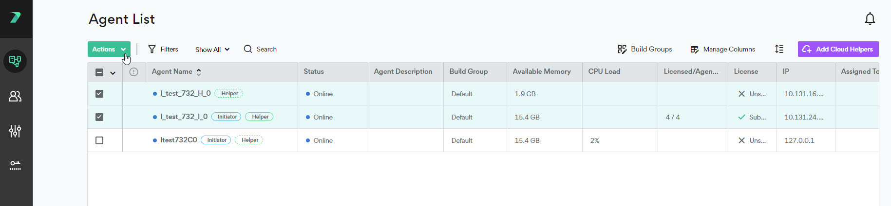 2. To assign multiple agents at once, select multiple agents and open the Actions menu.