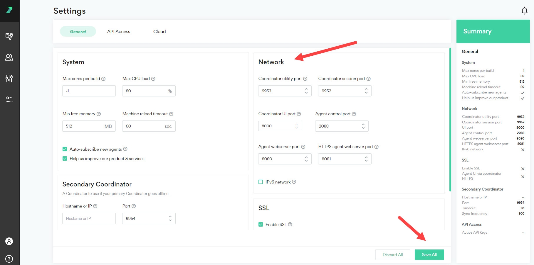 Several ports need to be open for the operation of Incredibuild Linux. They can be changed directly during installation by using flags, or after installation in the Coordinator and Agent settings.