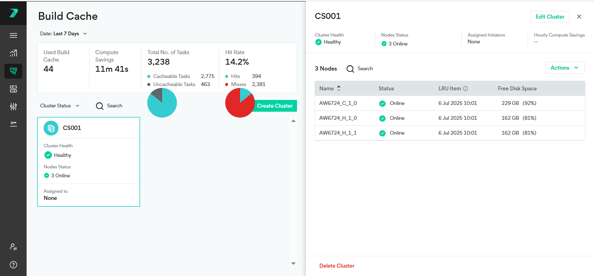 Hit Rate: The hit rate percentage, showing the number of cache hits out of the total number of cacheable tasks.