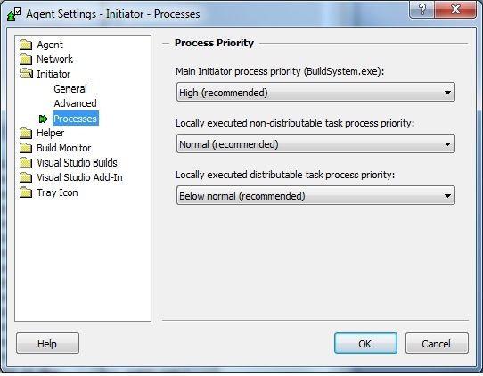 Processes page controls the process priority given to Incredibuild processes on builds started by this machine: