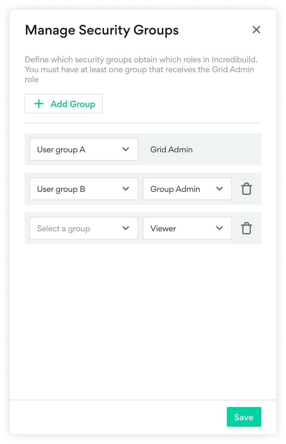 11. You can add as many user groups as you want in Incredibuild and assign them permissions: