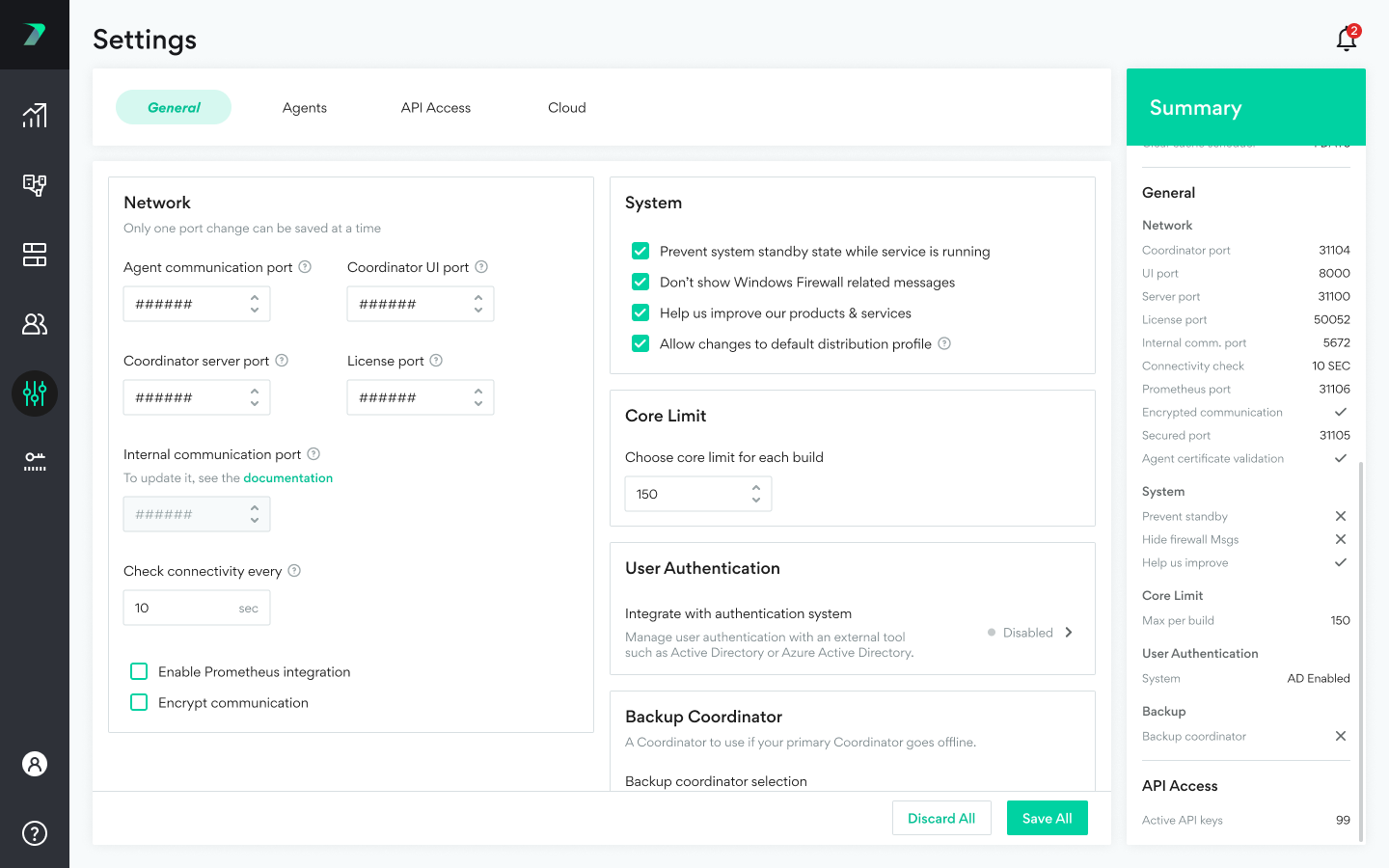 9. In Incredibuild, go to SettingsGeneral > User Authentication and click Disabled.