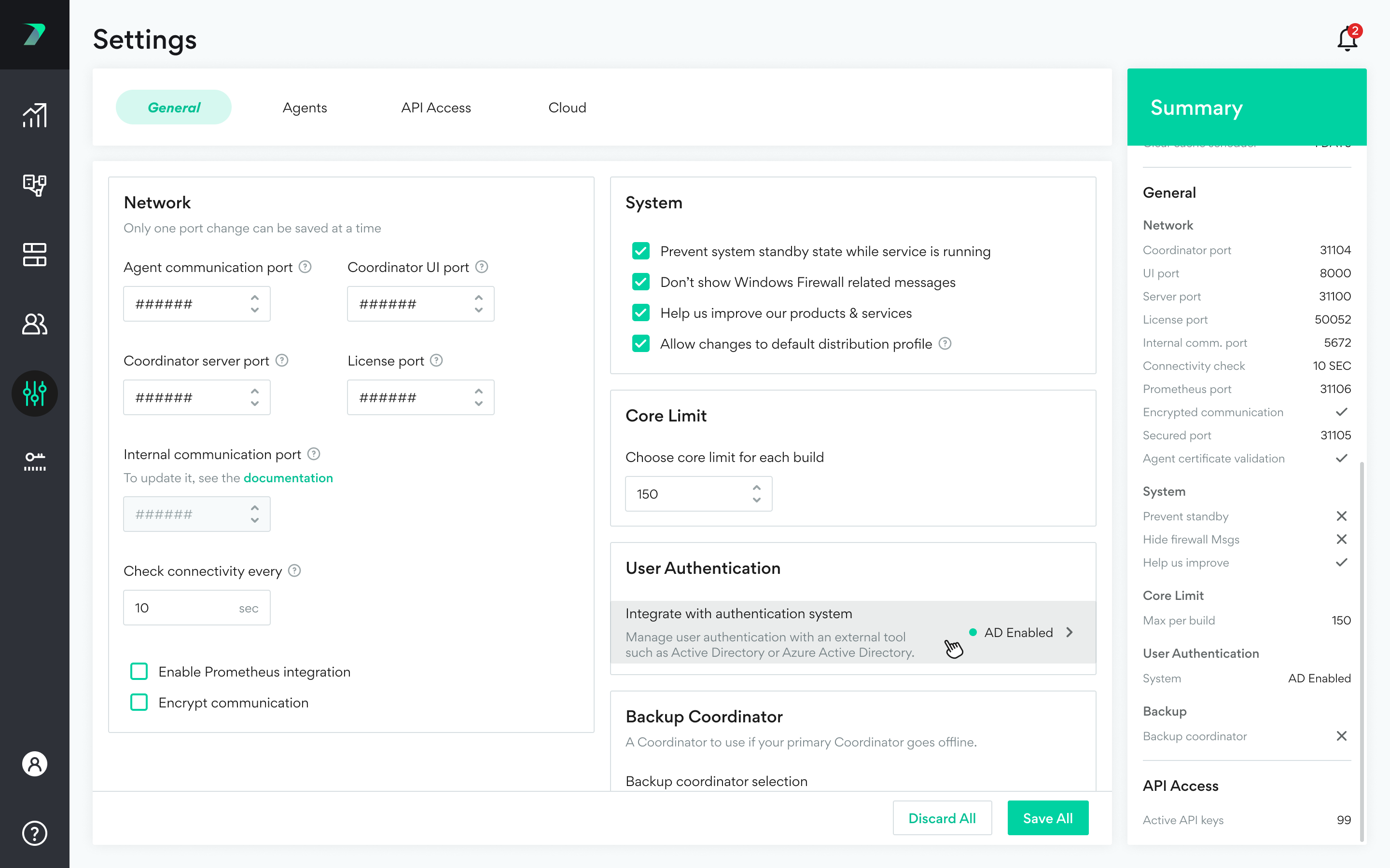 1. In Incredibuild, go to SettingsGeneral > User Authentication and click the User Authentication area.