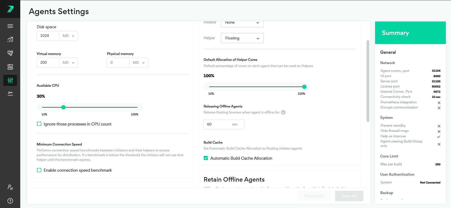 1. If you are using floating Initiators and want to enable Build Cache on all of them by default, go to Coordinator ManagerSettingsAgents Settings and check Automatic Build Cache Allocation.