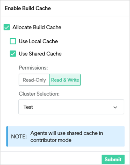 5. If you use a remote (shared) cache only, select whether the builds will run as Read-Only or Read & Write.