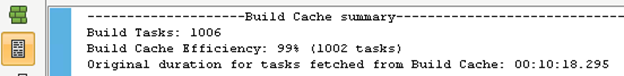 2. Examine the Build Monitor file and verify the cache hits at the end of the build match the “tasks to cache” from the previous build.