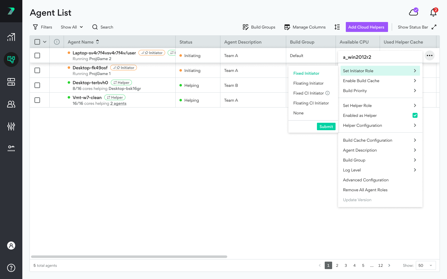 You can manually change the role of an individual agent, or a group of agents by going to the menu and selecting Set Initiator Role or Set Helper Role: