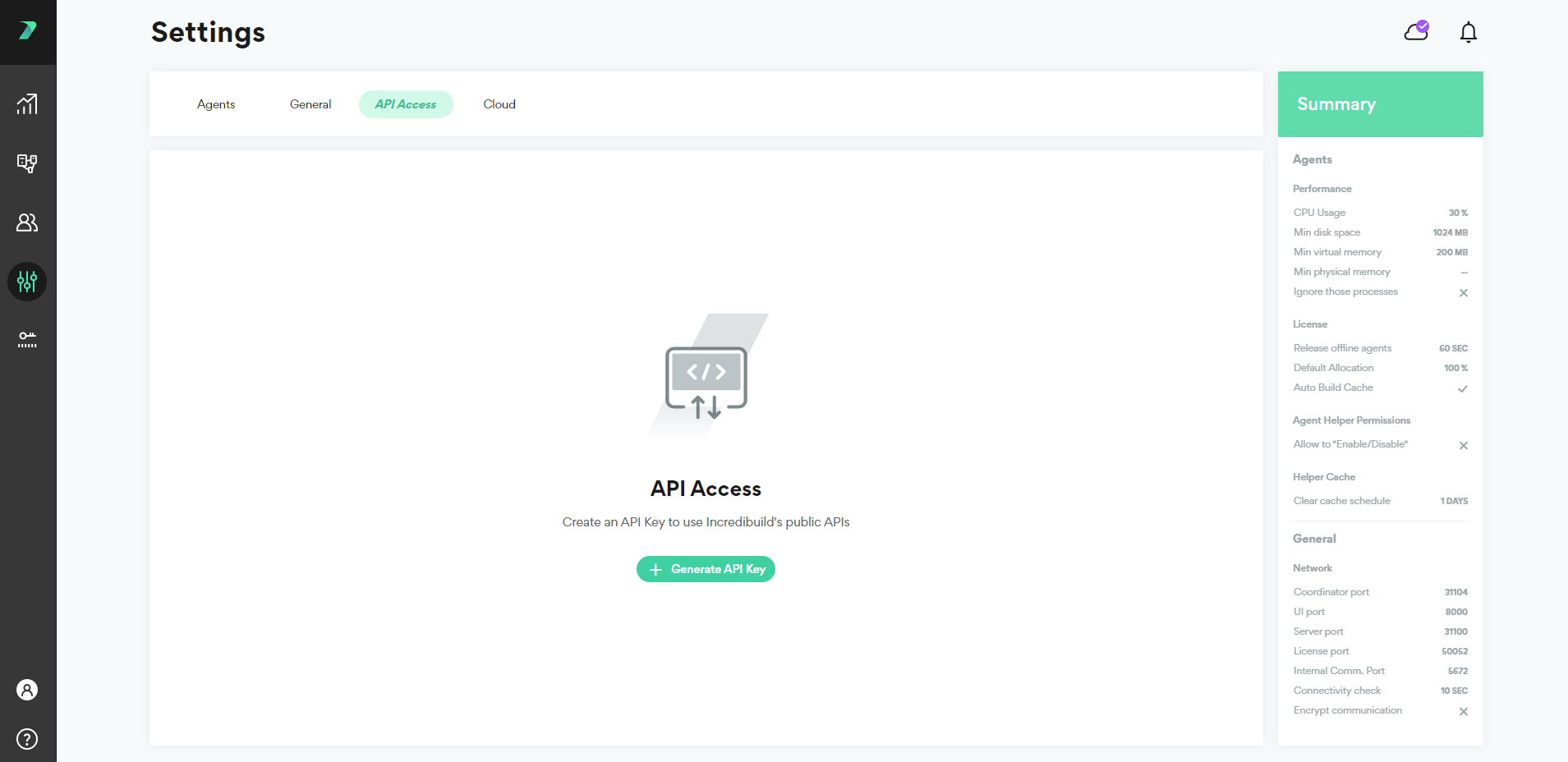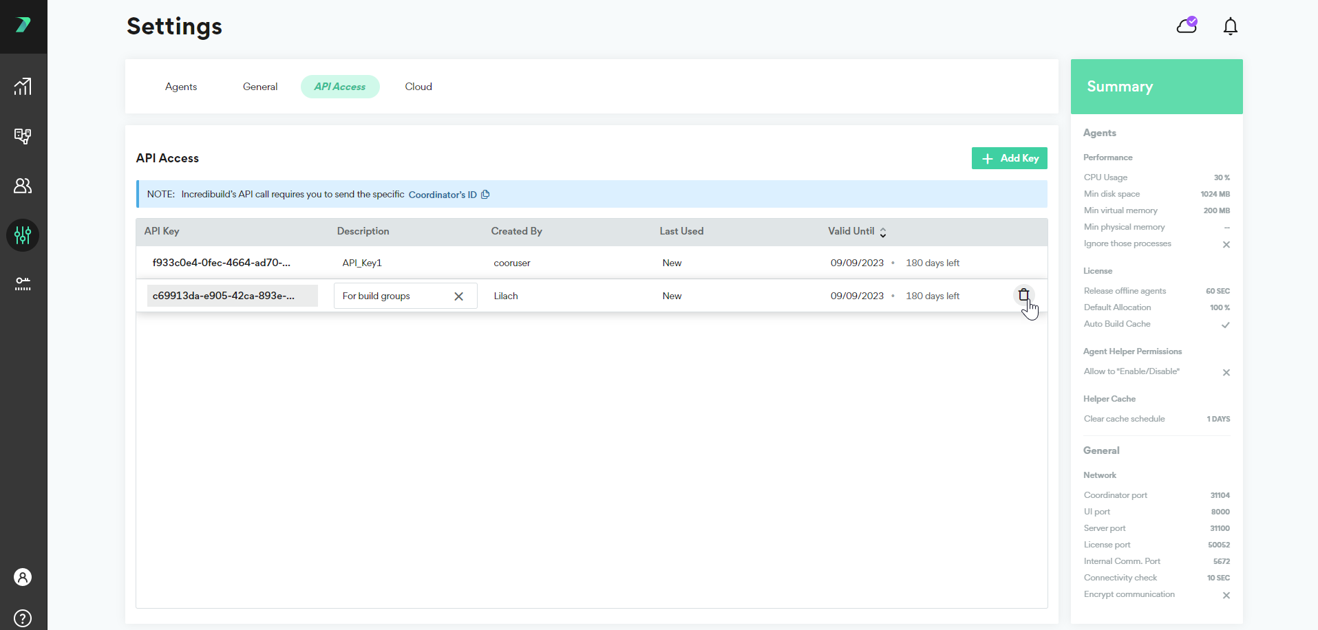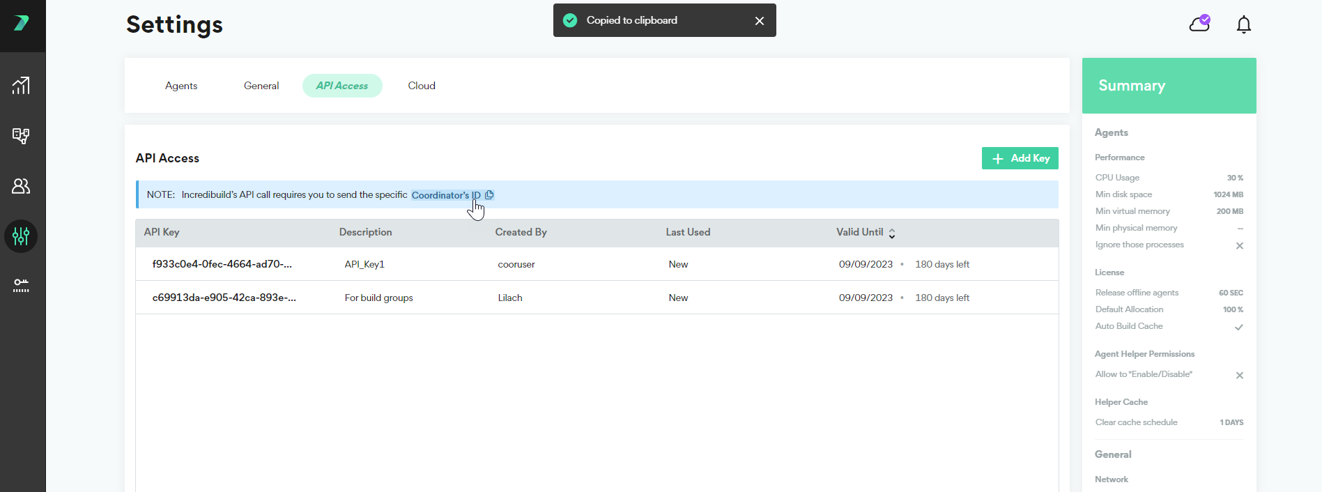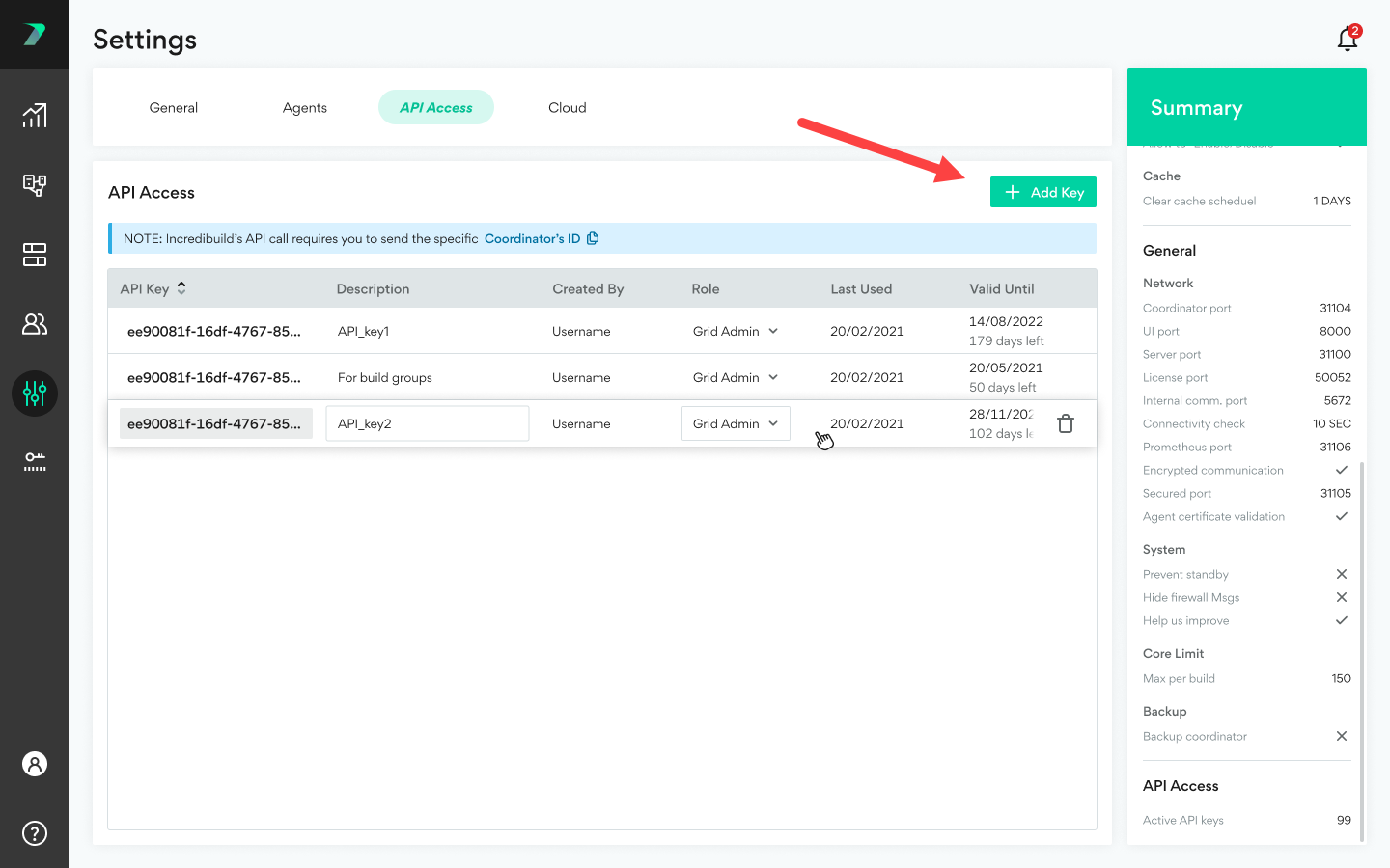 In the Coordinator Manager, go to Settings > API Access and click Generate API Key.