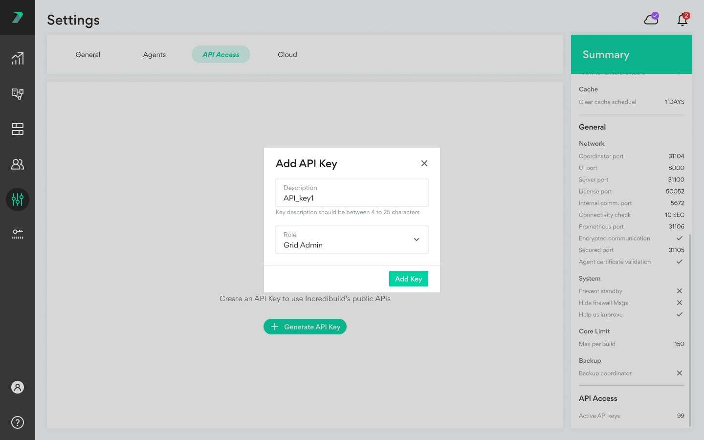 Enter a description to identify the API Key, and specify the type of users who are allowed to use this key. Click Add Key.