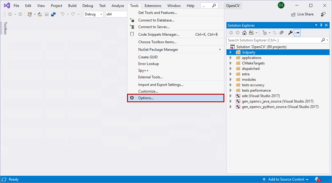 In Visual Studio, go to Tools > Options.
