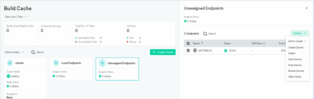 You can view the details about the clusters and local endpoints in your Build Cache in the Coordinator Manager.