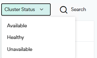 You can filter by Cluster Status to view Available, Healthy, or Unavailable clusters.
