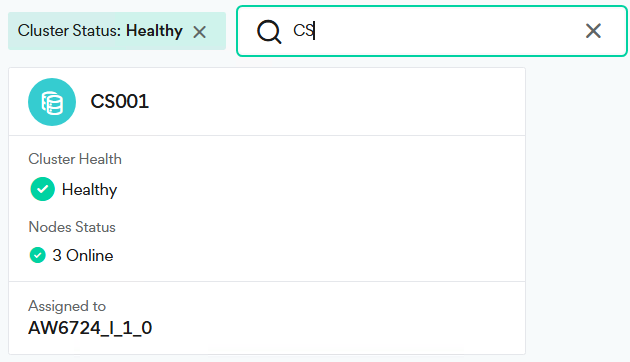 You can search for a cluster by typing a string in the search field.