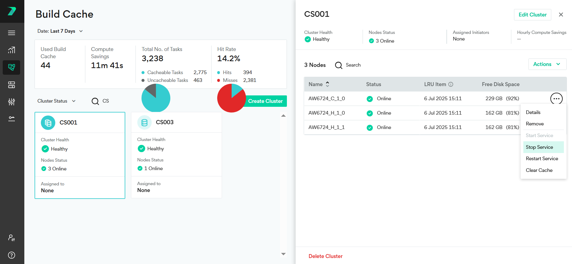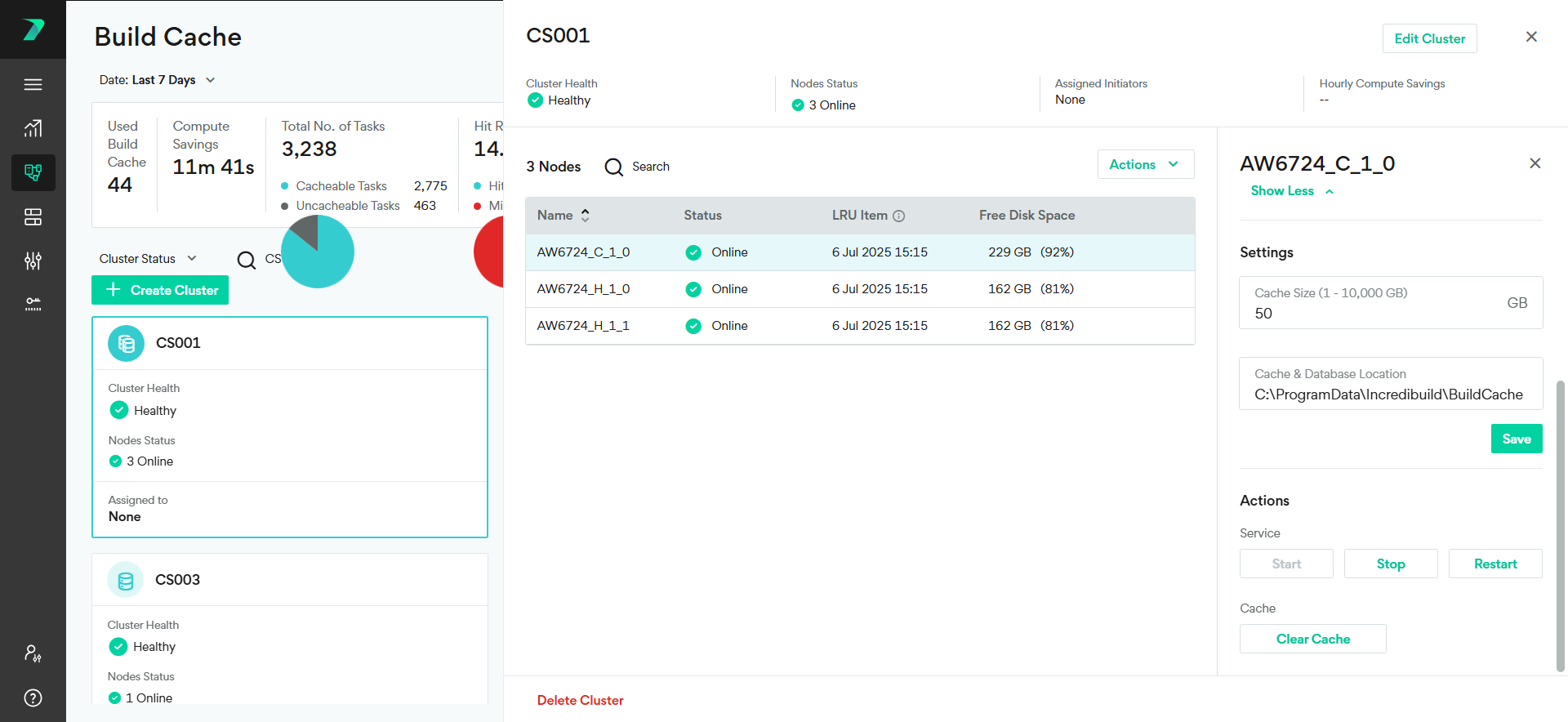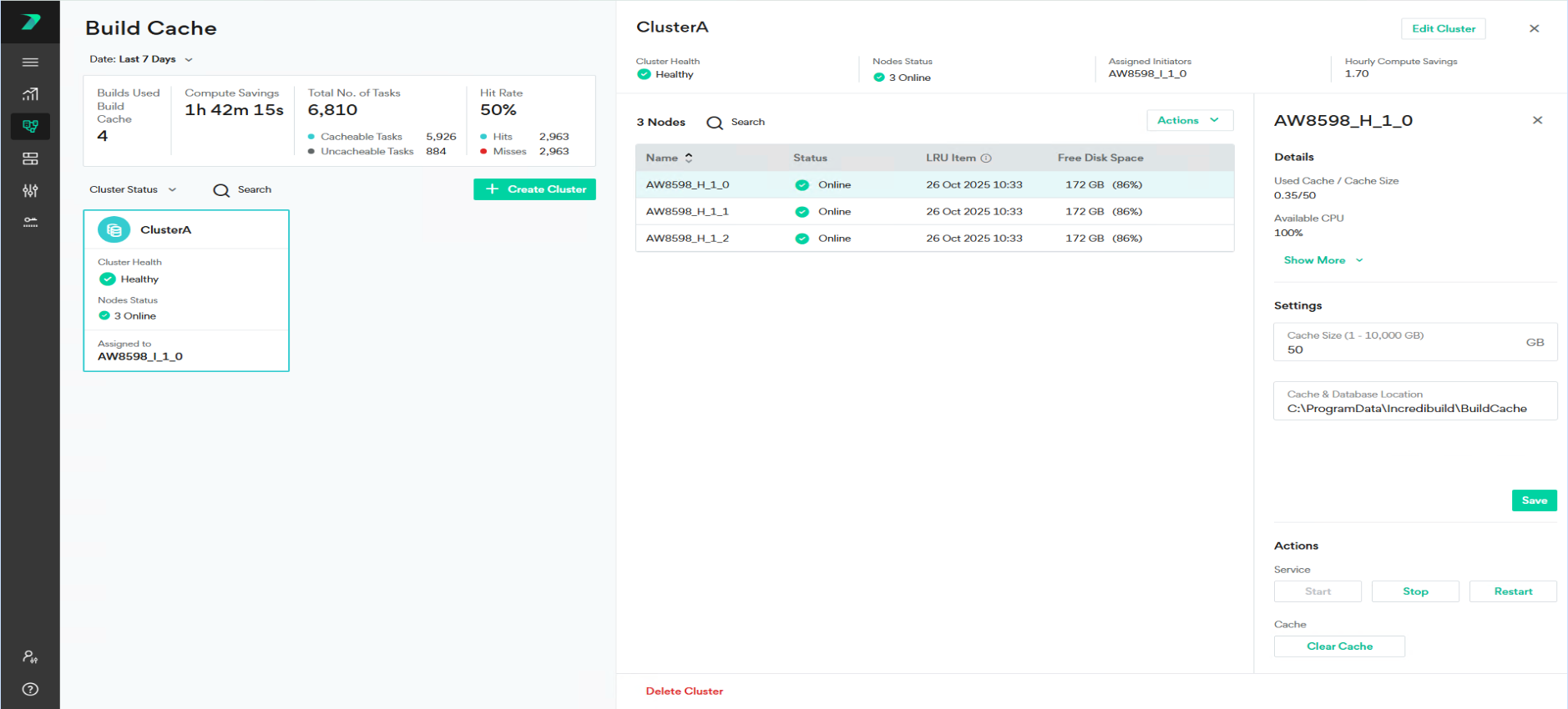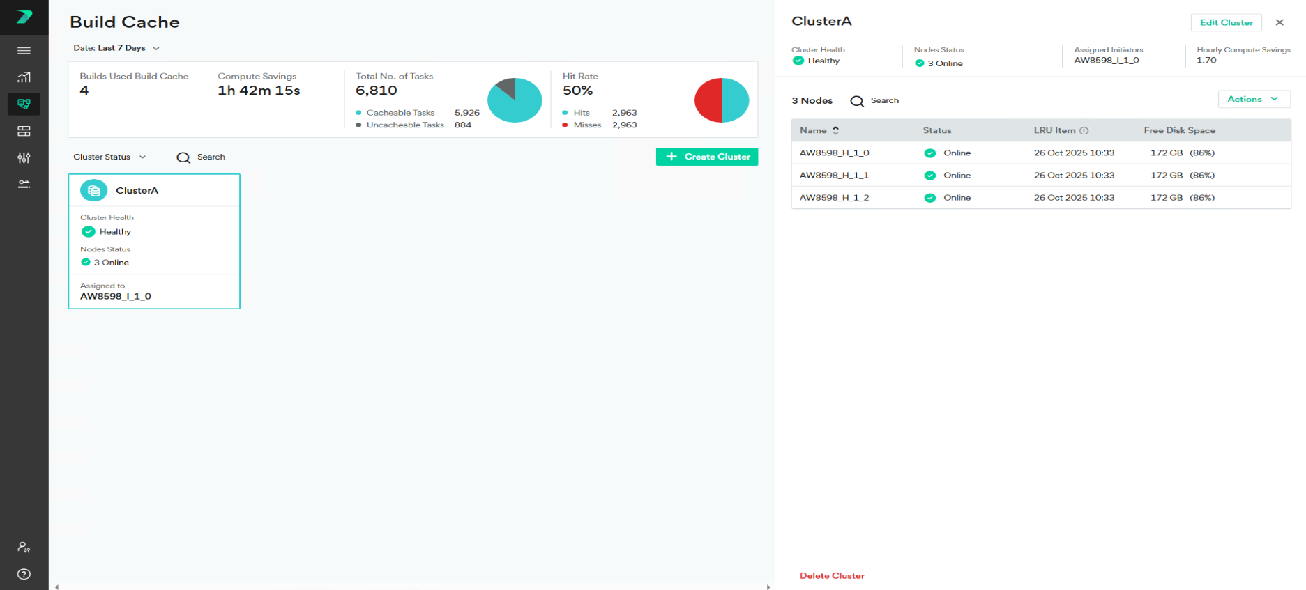 In Build Cache, click on the required cluster to view the following cluster information: