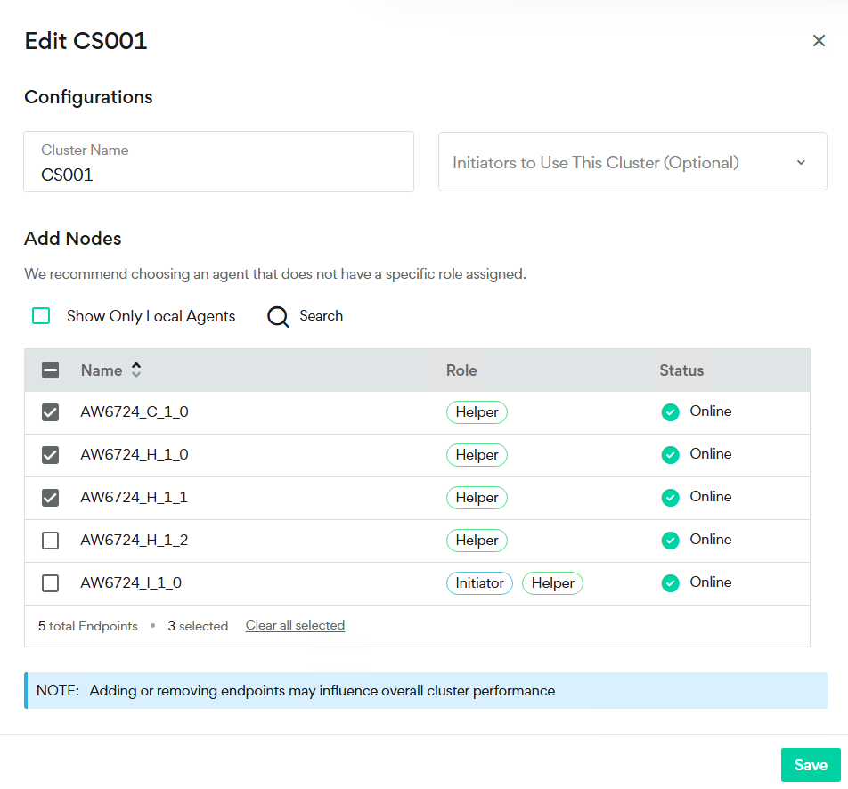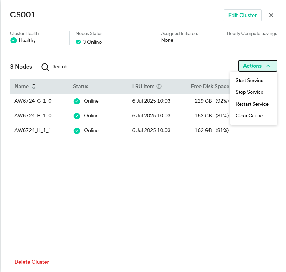 You can add or remove nodes from the cluster, change the cluster name, and assign Initiators to use this cluster.