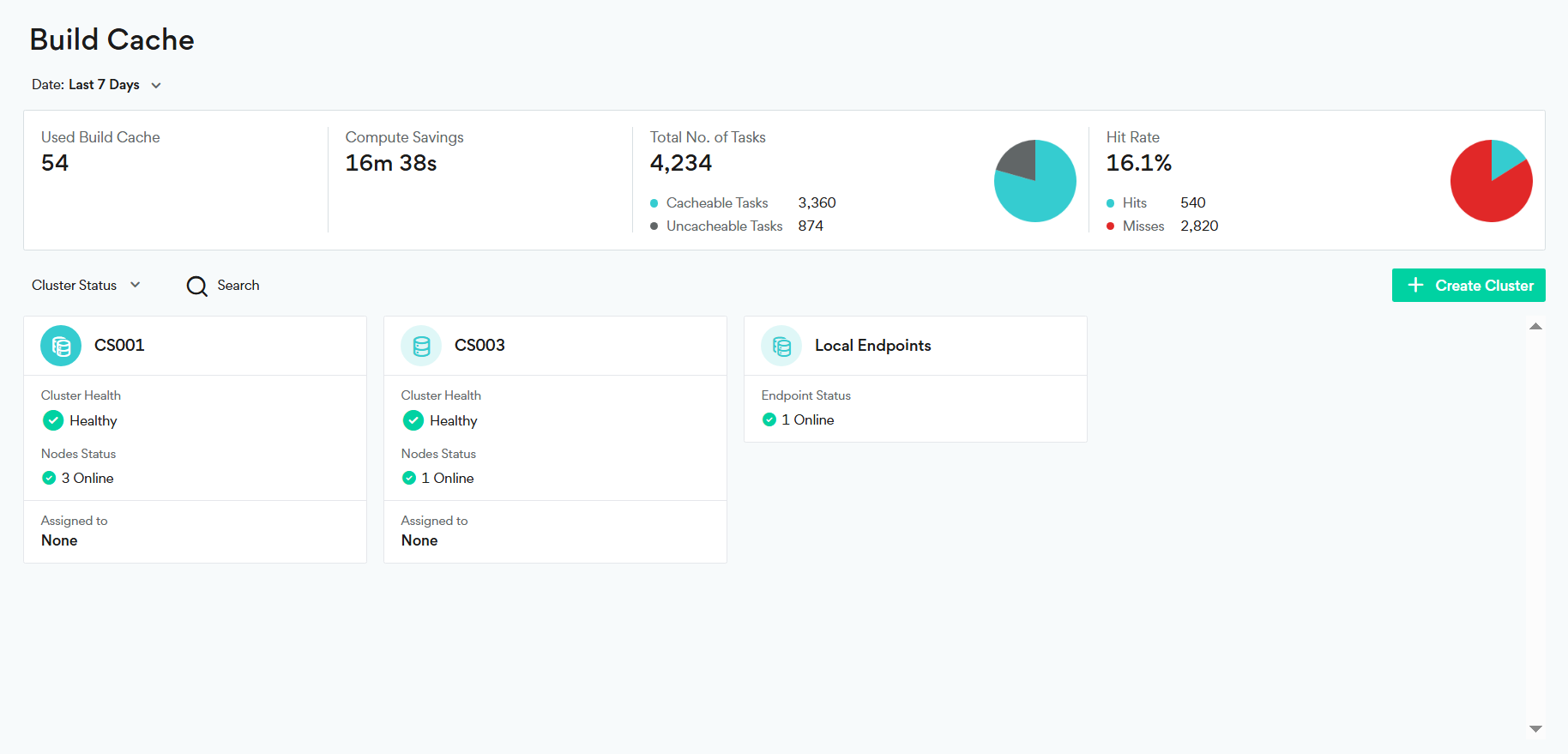 Hit Rate: The hit rate percentage, showing the number of cache hits out of the total number of cacheable tasks.