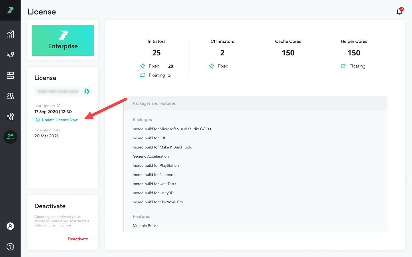 In the Coordinator > License tab, click Update License Now.