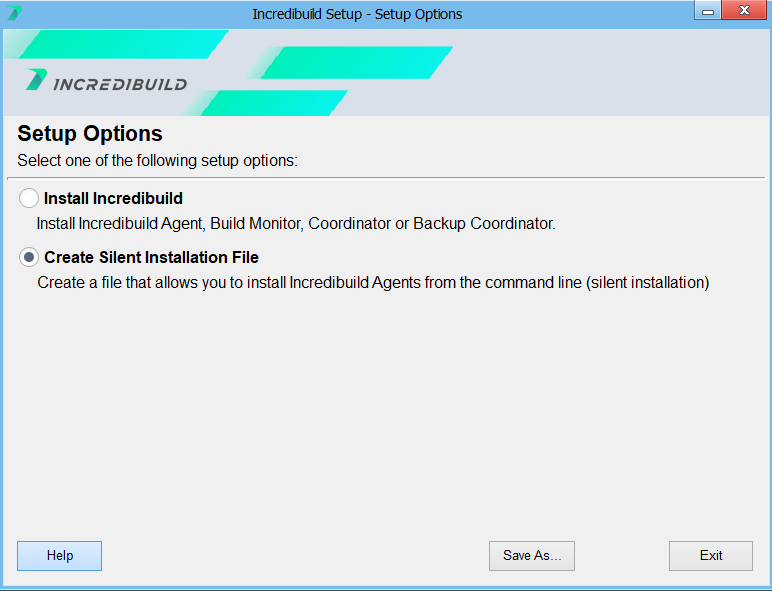 The Incredibuild silent installation lets you use the command line to install Incredibuild components. This type of installation is particularly useful if you are installing Incredibuild on many machines, or if you do not want your users to be aware of the Incredibuild installation.