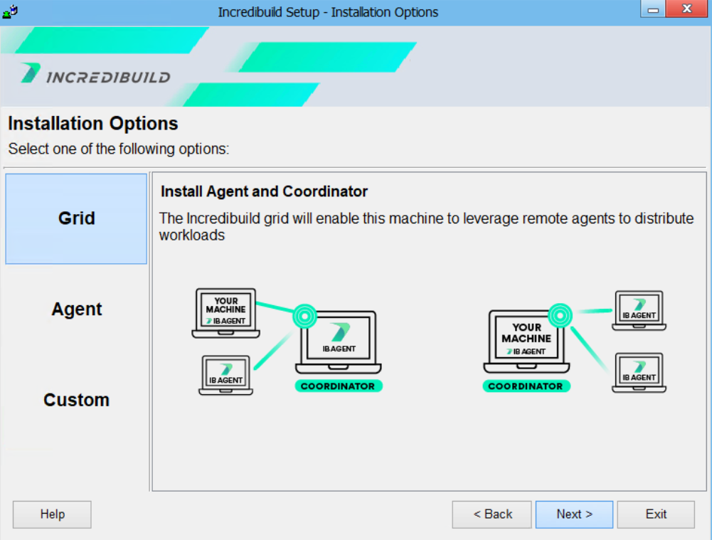 If you’ve already installed the Incredibuild Coordinator and want to expand your distribution grid, use the Setup Wizard to add Incredibuild Agents on additional machines.