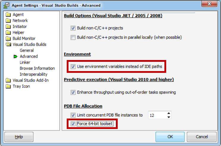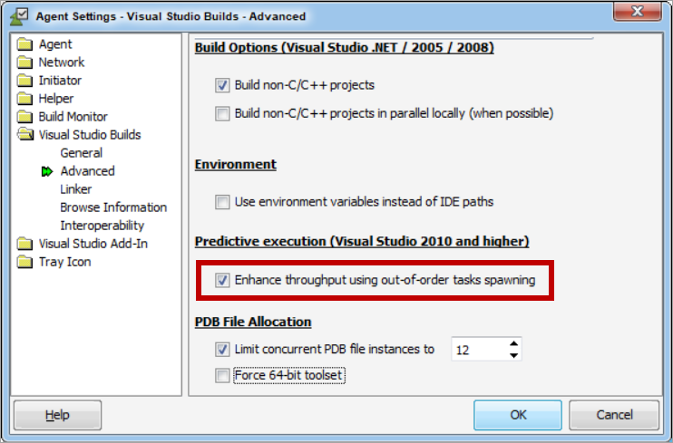 Predictive execution, which is not natively supported by Visual Studio. This can further optimize your build acceleration, by increasing the execution parallelization of compilation tasks when no dependencies exist.