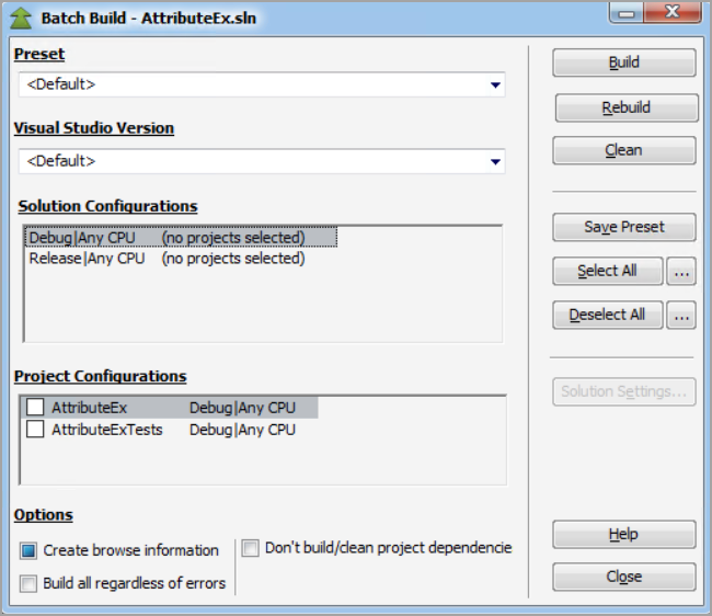 If you want to apply special Visual Studio settings to your builds, or use all Visual Studio post-build windows, procedures, extensions and messages, use the Internal mode.