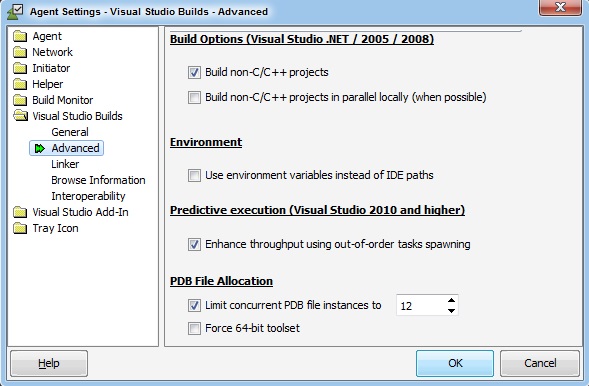 Enabling this option (VS2010 and higher) may highly improve build performance by instructing Incredibuild to execute Visual Studio tasks (compilation, link, RC etc.) in an optimized order and not necessarily in the same order as Visual Studio would have executed them.