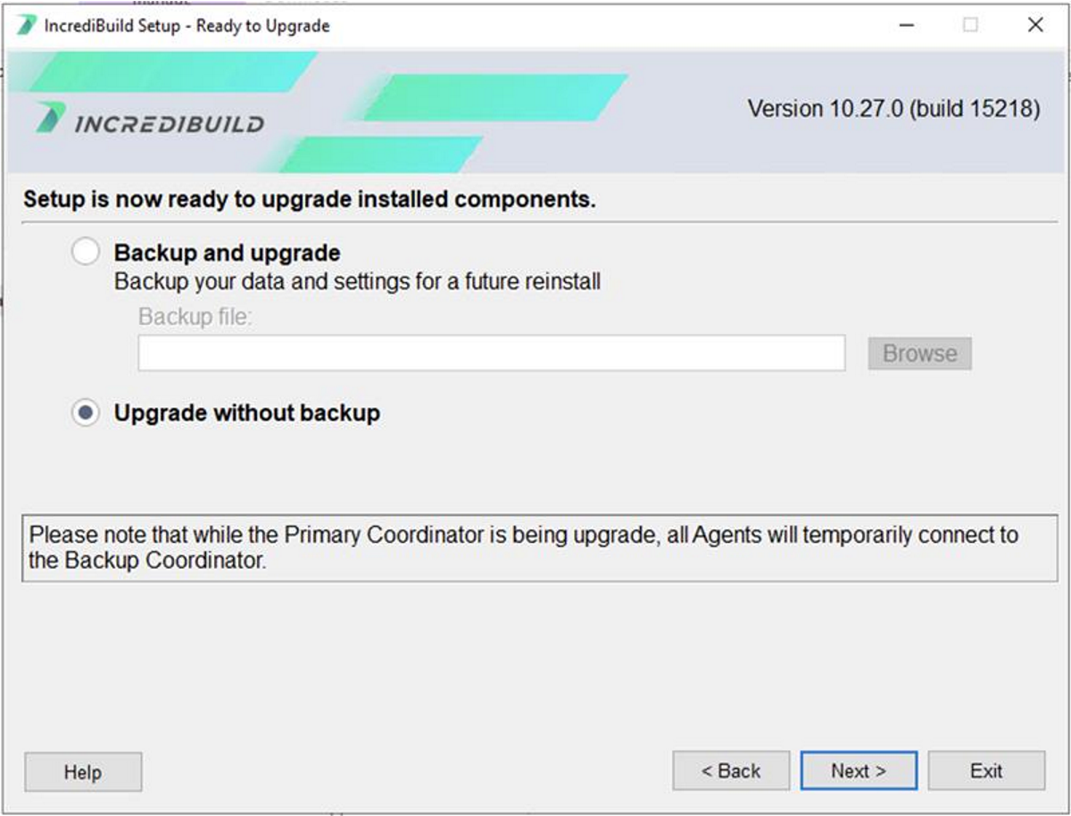 Direct Upgrade: Upgrade your Incredibuild Coordinator directly on the same machine.
