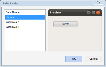 Clicking on the Change Skin button opens the “Select skin” dialog, from which you can choose from several skins. The default skin is Windows 7.