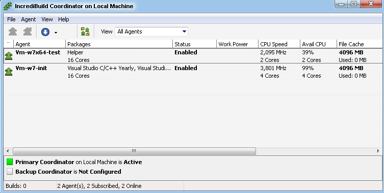 Note that the above command can be executed from any machine running Incredibuild and is connected to the same Incredibuild Coordinator that vm-w7x64-test is connected to.