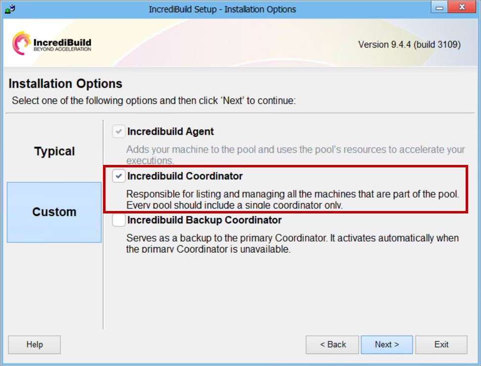 On the Installation Options page, select the Incredibuild Coordinator check box. Then, click Next: